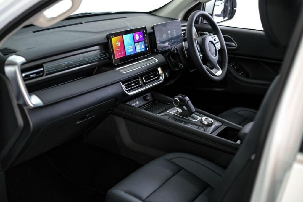 Moving inside, the P-Series has a clean cabin fitted with premium soft-touch materials and advanced tech features giving you a luxurious SUV-like feel. It has a high-tech 9″ touchscreen that comes standard with voice recognition, Carplay, Android Auto, and wireless charging for your convenience.