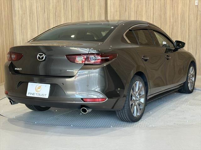 The Mazda 3 graces the Kodo design language that emphasizes clean lines and sculpted surfaces. LED headlights flank a chrome-accented grille adorned with the Mazda emblem. The Mazda 3 is available as a sedan or a hatchback. It is available in a spectrum of colors.