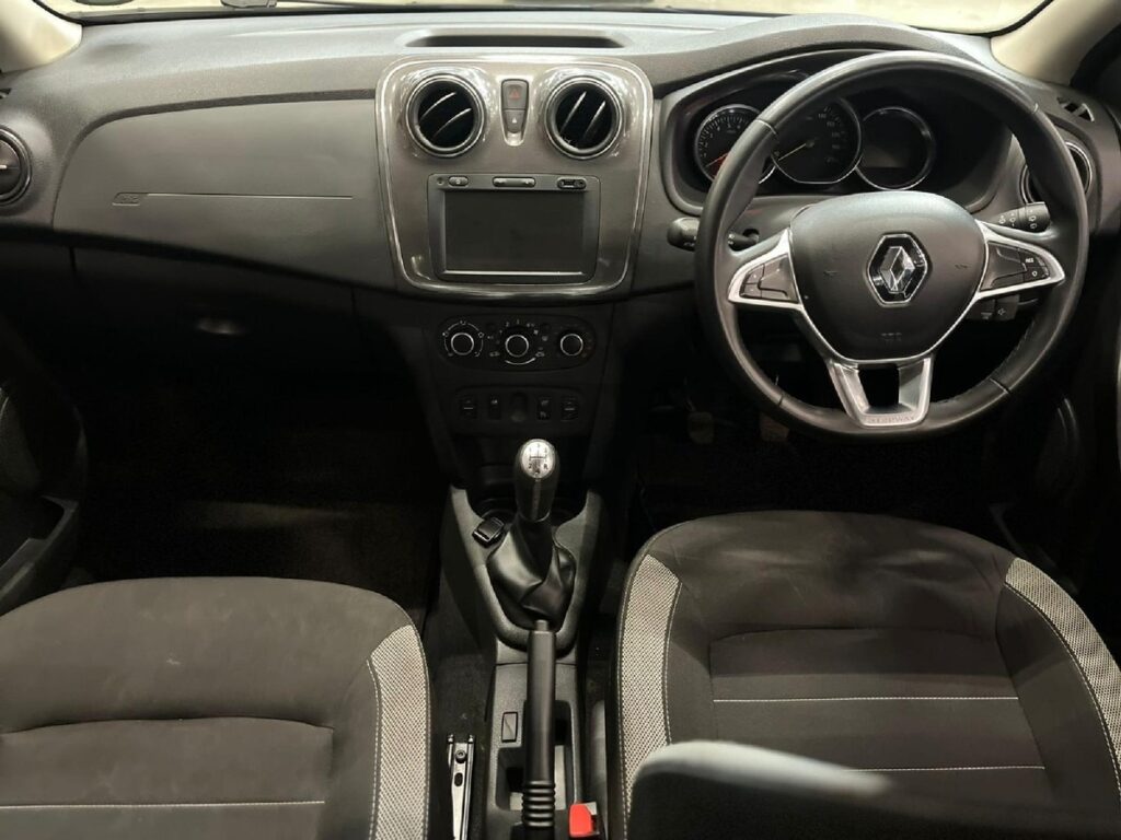 The Renault Sandero has a minimalistic yet elegant cabin. At the center of the dashboard sits a touchscreen infotainment system embedded with Apple Car Play & Android Auto. The steering wheel is power-assisted, and the driver has excellent visibility.
