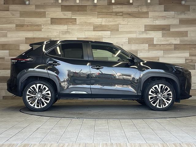 The Toyota Yaris Cross features a unique blend of ruggedness and modernity. LED headlights and daytime running lights inject sophistication, as a black plastic surrounding the lower part of the vehicle protects the body components from damage.